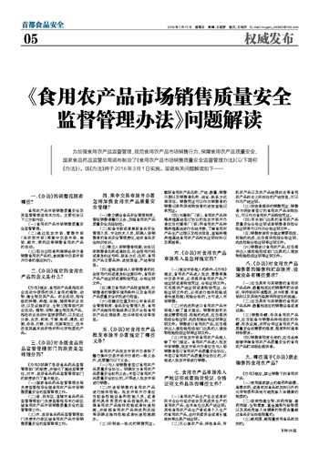 《食用农产品市场销售质量安全 监督管理办法》问题解读