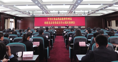 2016年北京市提出创建国家食品安全示范城市,并在2016下半年下发相关文件到各区进行学习。2017年3月16日,平谷局召开全区食品安全示范区创建工作部署会,明确了从生产、流通、到餐饮三个环节层层把控推进创区建设的工作方向,在过程中切实提升人民生活水平,保障辖区居民饮食安全。