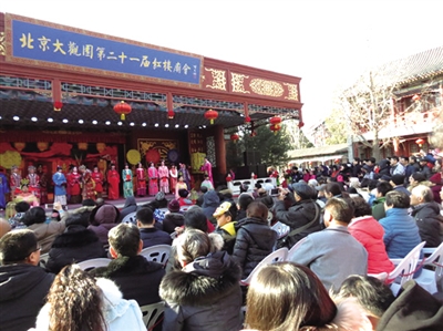 大观园在每年农历春节初一至初六举办“红楼庙会”。 庙会内容包括:文艺演出、民间花会、风味小吃、民俗活动等。其中“元妃省亲”古装巡游是大观园文化庙会的传统项目和独有的特色。充分展示红楼文化之风采,高雅的红楼文化特色、鲜明的民俗民间特色、浓浓京味特色构成了红楼庙会的三大特色。