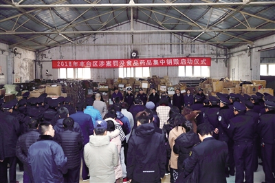 本报讯 胡昊 为加大对制售假冒伪劣食品药品、扰乱食品药品生产经营秩序行为的打击力度,维护辖区公众饮食用药安全,丰台区食药安委于11月21日组织食药、公安等部门开展假劣食品药品集中销毁活动。