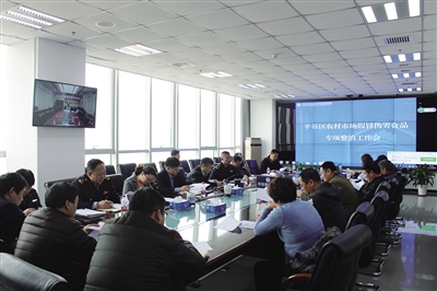 工作会主要内容是,一是传达了《关于深入开展农村市场假冒伪劣食品专项整治行为的通知》和区局制定的文件;二是再次强调市场主办方的主体责任,要高度重视农村市场假冒伪劣食品治理工作,严格自查市场内重点食品类别,不符合要求的一律清出市场;三是梳理近期检查存在的问题,确定下一步农村市场整治的重点方向。郝局长最后强调,1.认真落实整治方案,对在农村集市中从事问题食品经营的摊商要严格予以取缔;2.继续加强农村假冒伪劣食品排查,特别是重点开展农村集期市场专项检查。3.加强市场内食品的追根溯源;4.要求市场主办方落实主体责任,与监管部门共同努力净化农村食品市场。