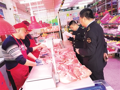 本报讯 张堃 为加强辖区猪肉产品食品安全监管力度,让广大群众吃上“放心肉”,昌平区市场监管局天通苑南食药所最近开展了流通环节和餐饮环节猪肉产品专项检查。