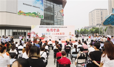本报讯 邝胜 以“尚德守法,食品安全让生活更美好”为主题的大兴区2019年食品安全宣传周启动仪式上周在天宫院街道辖区龙湖天街广场拉开帷幕。大兴区副区长、区食品药品安全委员会主任杜志勇,区食安委办公室主任、区市场监督管理局局长高建明,大兴区天宫院街道办事处主任杨国东、区食安委成员单位及区行业组织、食品生产经营单位、新闻媒体、居民等社会各界代表500余人参加了此次宣传活动。