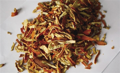 陈皮是橘及其变种的成熟果皮经干燥储存后的药食两用中药。相比新鲜橘皮,干燥的橘皮挥发油减少了很多,其中的橙皮苷等黄酮类药用物质含量却上升了,因此其性味变得缓和,让人更容易接受,药效也更好。