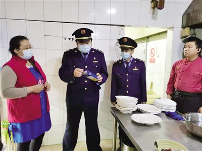三是日常工作开展情况,做好创建食品安全示范区工作为确保创建食品安全示范区工作顺利开展,桥梓镇所执法人员对辖区内创建的31个点位进行实地检查,重点查看了原材料进货、人员健康管控、食品加工制作、食品贮存、餐饮具消毒等方面工作,防控食品安全风险隐患,督促餐饮服务单位落实扫码测温、卫生清洁、通风消杀、从业人员健康检查、佩戴口罩手套等疫情防控措施。