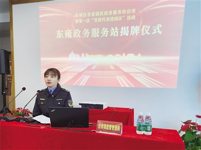 本报讯 2月14日,东城区市场监管局登记注册科、市场监管一科参加首家园区政务服务站启用暨第一次“首席代表进园区”活动。