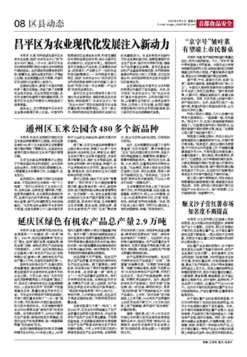 延庆区绿色有机农产品总产量2.9万吨