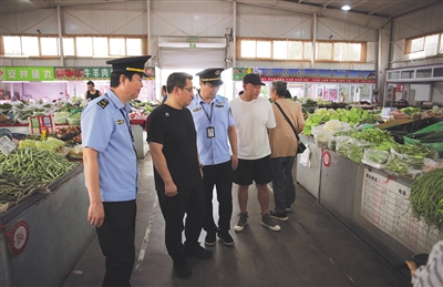 高仁海一行首先来到北京京西兴顺农副产品市场中心,向市场主办方询问市场经营情况,翻阅市场相关制度,了解市场需求。随后走进蔬菜水果销售厅和猪肉销售区,查阅《农贸市场食品进货查验记录台账》及《农贸市场食用农产品进货查验记录台账》,了解猪肉溯源码扫码查询系统的上线使用情况。在北京双峪农副产品市场中心,高仁海实地察看市场食品自检室,查阅市场检测记录,向负责检测的工作人员详细了解市场检测产品、检测项目、检测结果公示等情况。