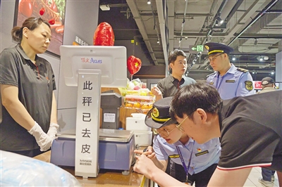 检查过程中,执法人员还对部分鲜肉、水产品的电子秤进行随机称重,所有的电子秤的误差值均符合相关规定。对于事先已经称重并加贴食品重量标签的蔬菜水果、干果蜜饯,执法人员将食品的包装盒、包装袋去除后重新进行称重,严格确保消费者最终买到的食品足斤足两。