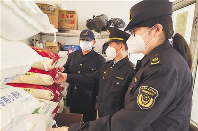 执法人员检查食材安全。