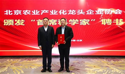 北京农业产业化龙头企业协会颁发“首席科学家”聘书。