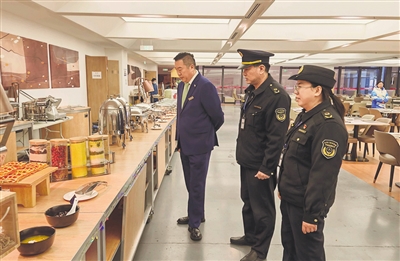 二是开展食品安全检查。执法人员以冬奥村酒店餐厅、美食广场、便利店、集散平台商业区等为重点点位,加大食品风险排查力度,检查是否存在无证经营、超范围经营、销售假冒伪劣和超过保质期食品等违法行为,要求经营者做好食品加工存贮、食品加工制作、从业人员健康管理、餐饮具消毒等环节,严防严控食品安全风险隐患,认真落实食品安全主体责任和各项食品安全管理制度相关要求。