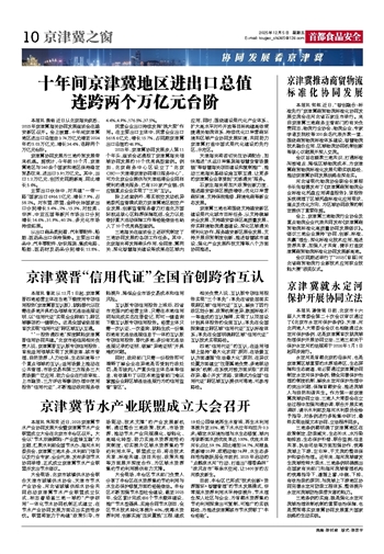 十年间京津冀地区进出口总值连跨两个万亿元台阶