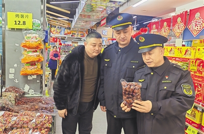 执法人员检查节令食品安全。