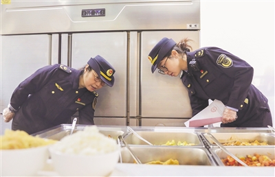 一碗热饭,暖了民心,也彰显了海淀政务服务的速度与温度。海淀区市场监管局持续强化辖区养老助餐全链条食品安全监管,严把食材采购、加工制作、餐具消毒等各个关口,用严格监管守护老年群体“舌尖上的安全”,持续提升辖区群众的获得感、幸福感、安全感。图为近日执法人员检查社区食堂后厨环境。(海淀区市场监管局)