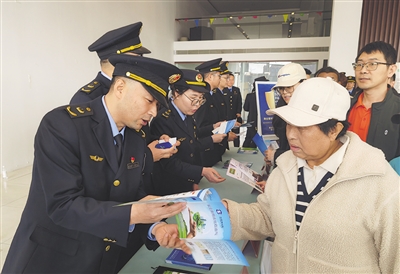 执法人员发放消费维权相关资料。