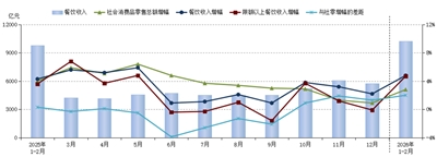 本报讯 治殊 国家统计局3月16日发布最新数据显示,2026年1—2月份,全国餐饮收入10264亿元,同比增长4.8%;限额以上单位餐饮收入2813亿元,同比增长4.7%。